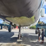 The life raft is in a plastic canister and was lashed to the top of the deck with straps. The life raft’s purpose is to inflate once it is launched into the water so that we can float in the protection of an inflated, covered raft if our sailboat sank until we are rescued. We have ditch bag containing flares, water, VHF handheld radio, handheld GPS, and EPIRB. The EPIRB when activated sends a signal to a satellite identifying our exact location indicating that we are in trouble. They would know our postion so as to increase our chances of rescue.