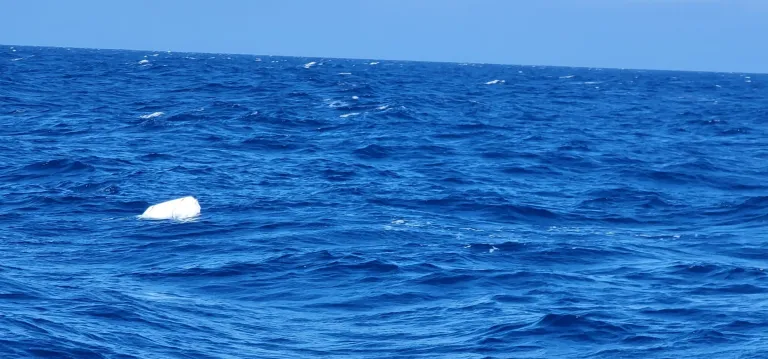 The last we saw of the life raft after it slid off the boat. It appeared to be sinking……….