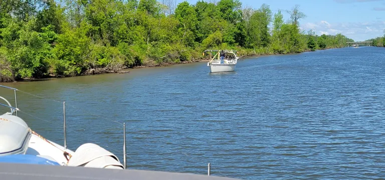 Motoring after lock 19 before getting stuck carefully following the channel markers